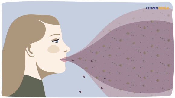 1. Mitä voimakkaammin tartuttava henkilö puhuu, yskii, aivastelee tai puuskuttaa, sitä enemmän hän tuottaa ilmaan virusta sisältäviä hiukkasia. Suurin osa näistä hiukkasista on pieniä aerosoleja. Ne kulkeutuvat tilassa samalla tavalla kuin tupakansavu, mutta näkymättömänä ja hajuttomana.